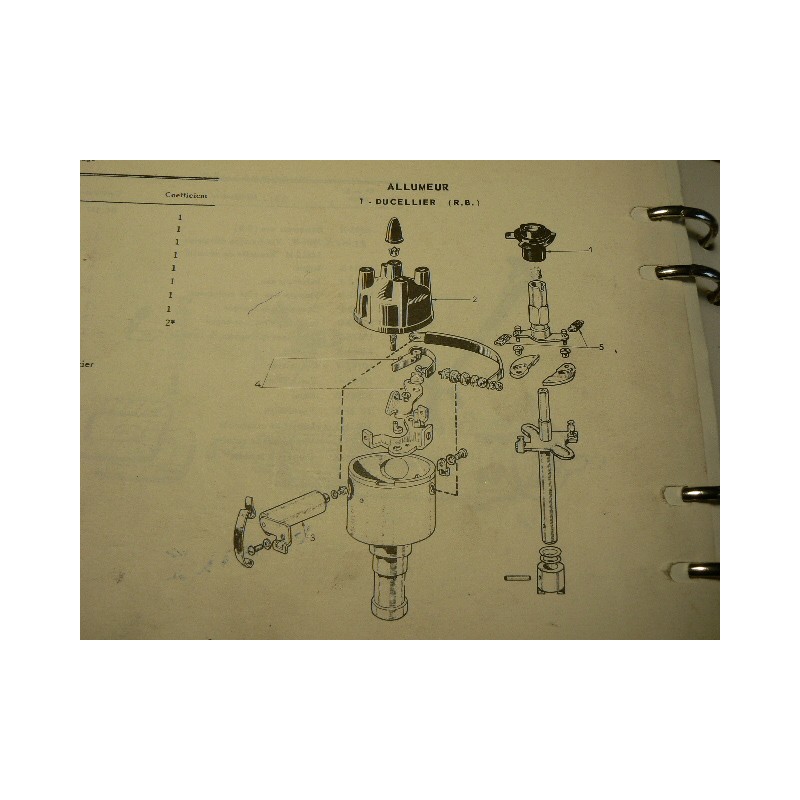 Vue éclatée de l'allumeur RB Ducellier sur Aronde Ariane. Condensateur traversant.