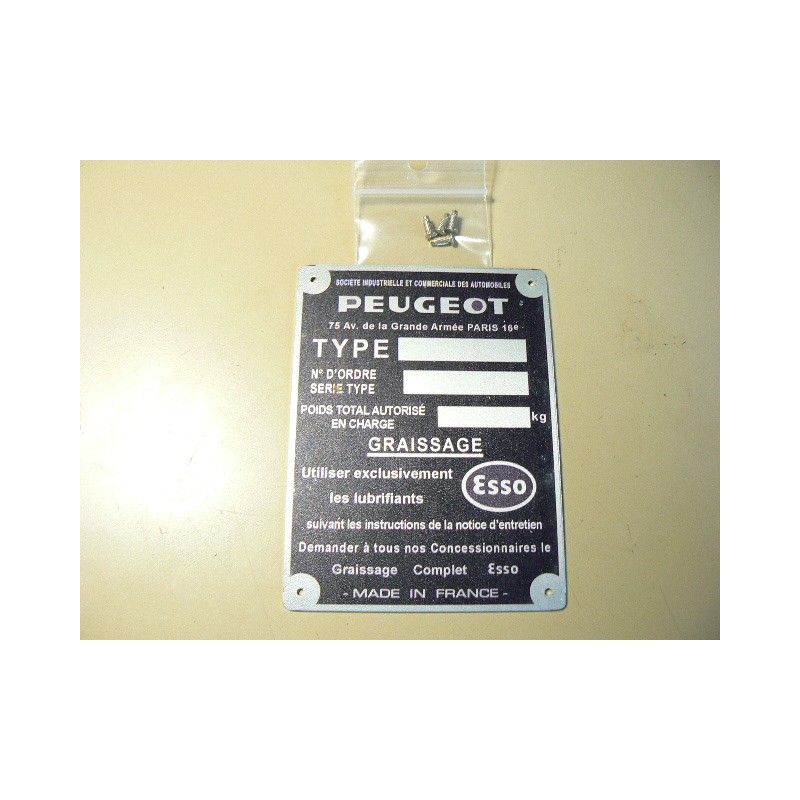 Plaque constructeur vierge 203 403 404 504 204. Avec rivets