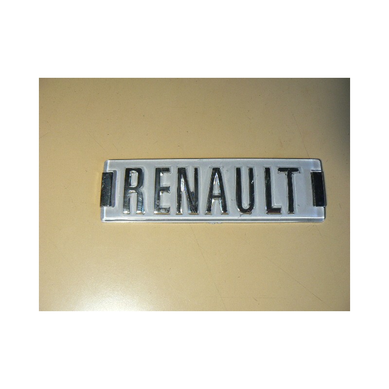 Monogramme de capot Renault gris. Longueur 152mm. Avec ses 2 plaquettes de fixation.