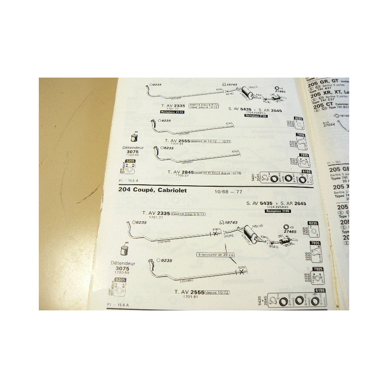 Valable aussi sur 304 Berline et break Essence de 69 à 09/72 + 304 berline et break Diesel 76 à 09/79. Pour 304 Cabriolet de 03/69 à 09/72, raccourcir de 29cm.
