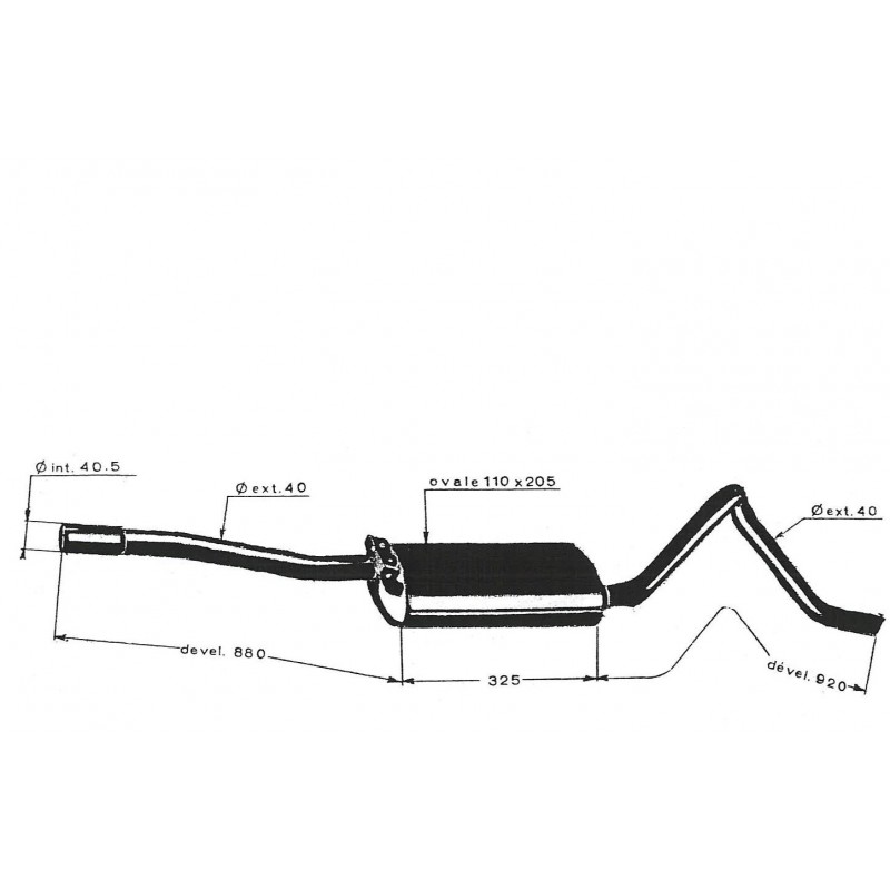 Silencieux d'échappement Simca P60 raccordement à emmanchement/emboiture Male/Femelle. Tous types P60 berline Monaco, Plein Ciel et Océane. Années 60 à fin de série. Si envoi hors de France, le tube sera coupé et un manchon de raccordement sera fourni avec 2 colliers.