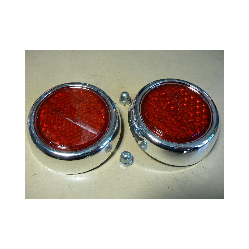 Paire de catadioptres arrières RONDS pour Peugeot 404. Refabrication.