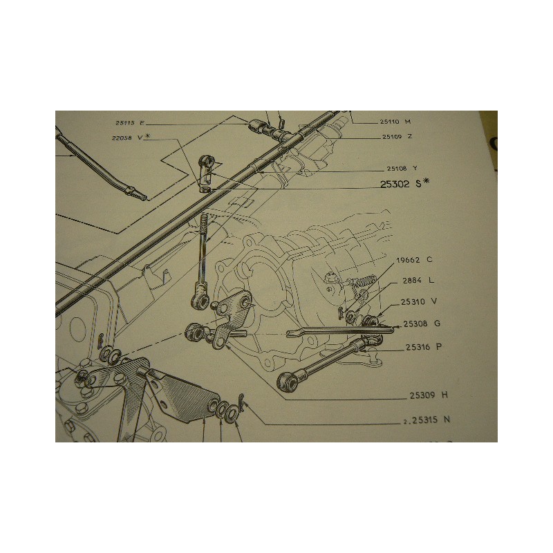 1 Silent bloc commande de vitesses sur le coté de la boite avec vitesses (vitesses au volant). Silentbloc en caoutchouc adaptable. C'est le seul car tous les autres sont des rotules. C'est celui qui est tenu par une goupille.