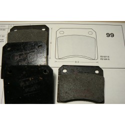 jeu de 4 plaquettes de freins à disques Simca 1500 uniquement avec etriers Girling 3 pistons. Fabrication Flertex ou Ferodo ou autres marques selon arrivages.