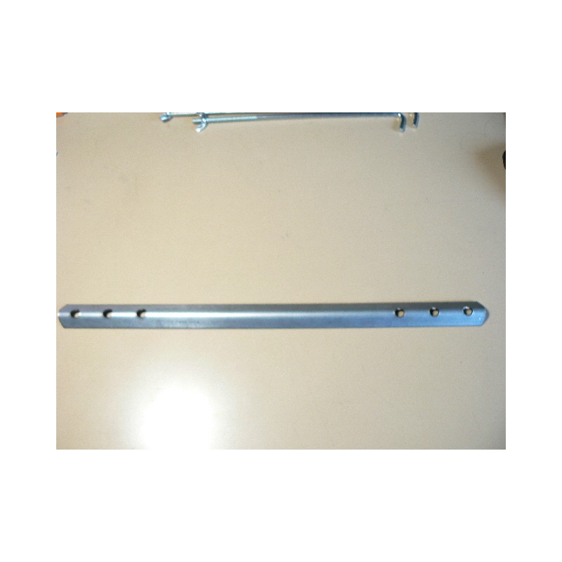 Cornière de fixation de batterie adaptable et recoupable : longueur totale 395mm, entraxe 2 trous les plus proches = 232mm, entraxe 2 trous les plus espacés = 360mm. Les tirants se commandent à part.