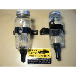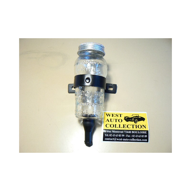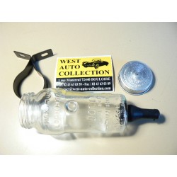 bocal de liquide de frein (ou embrayage) complet Lockheed NIVOCLAIR d'origine d'occasion, avec tétine neuve pour tuyau de 6mm, couvercle alu lisse ou marqué avec joint neuf et patte de fixation d'occasion. Pour une tétine de tuyau de 8mm, nous consulter. Pour un gros bocal type R8 Gordini, nous consulter.