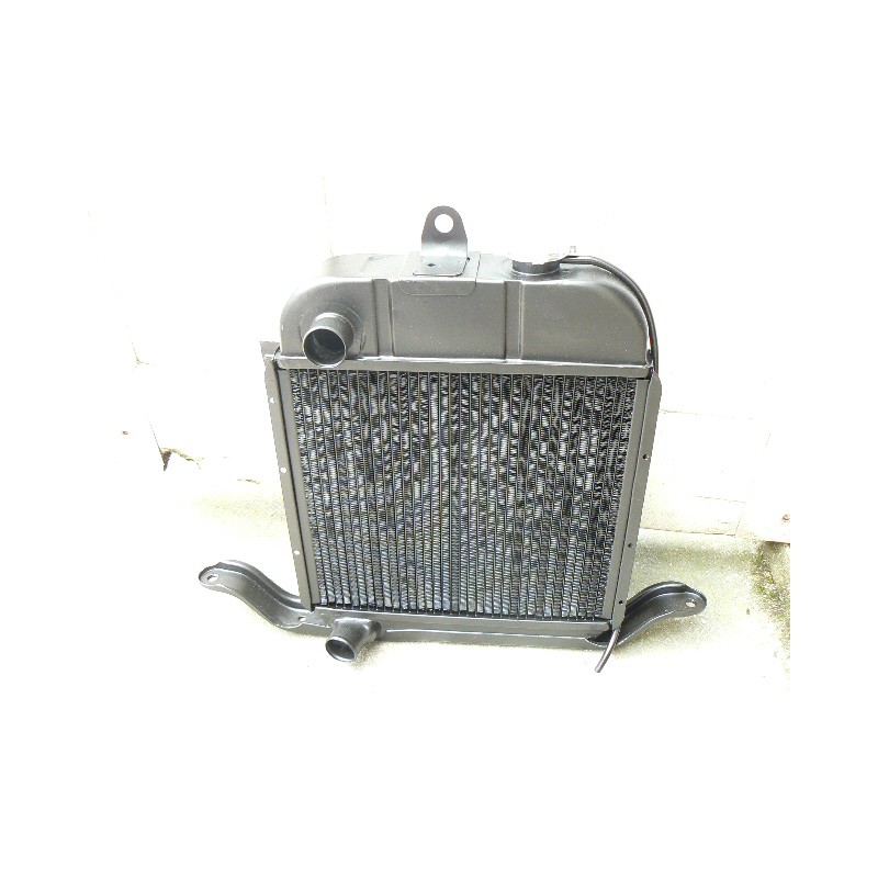 Radiateur rénové : faisceau cuivre neuf, fourni avec un bouchon à soupape 1/4 de tour neuf. Echange standard : vous envoyez le votre, nous regardons si les composants sont réutilisables et nous vous en renvoyons un immédiatement. Entrée et Sortie à la verticale l'une de l'autre pour Aronde 1300 P60 et Ariane Flash et Rush. Patte supérieure de longueur totale courte 5cm ou longue 9cm. A préciser à la commande.