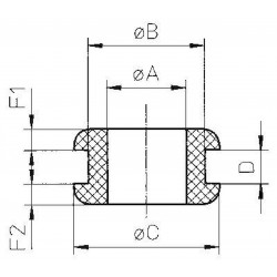 Oeillet caoutchouc passe fil pour trou dans la tole de 15-16mm. Diamétre intérieur 9mm, extérieur 22mm. La pièce.