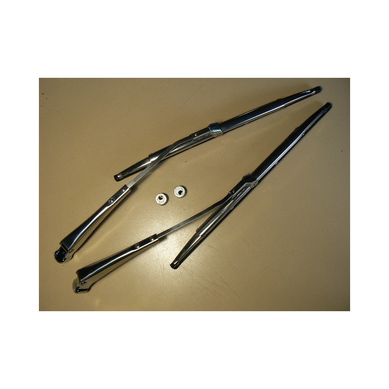 Kit 2 porte-balai (1 courbé gauche + 1 courbé droit) + 2 raclettes + 2 adaptateurs diamètre 5mm avec rainure. Tout inox. Lire description.